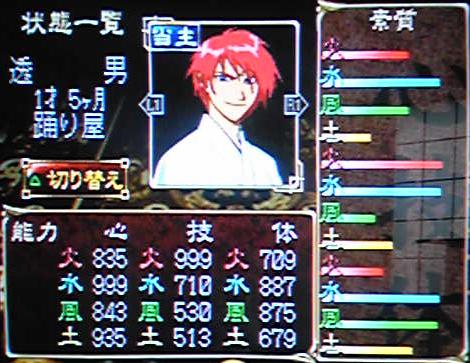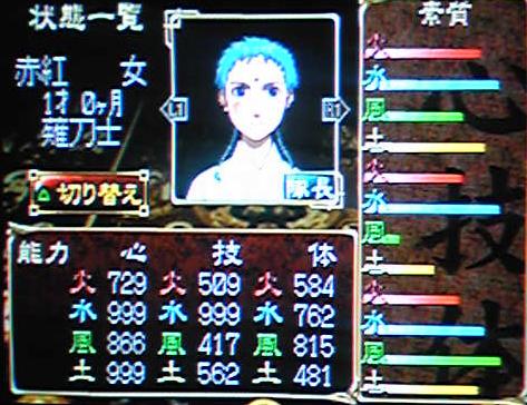 身体能力は高く技の値、特に技火・技水に秀でる。